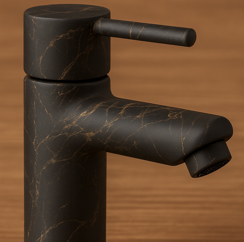 Siyah lavabo bataryası mermer desenli, modern ve lüks banyo tasarımlarında öne çıkan bir üründür. Mermer desenli yüzeyi, minimalist ve sofistike bir estetik sunar.